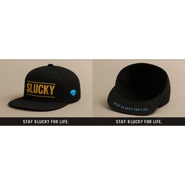 This premium black snapback features the iconic $LUCKY front embroidery with clean gold detailing and a signature blue diamond side patch symbolizing strength, clarity, and unbreakable conviction.